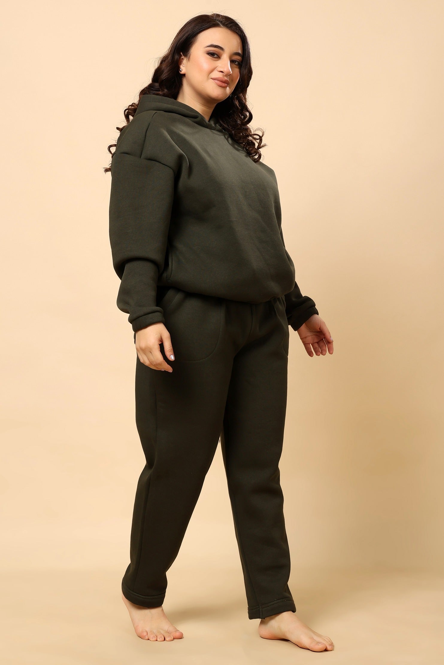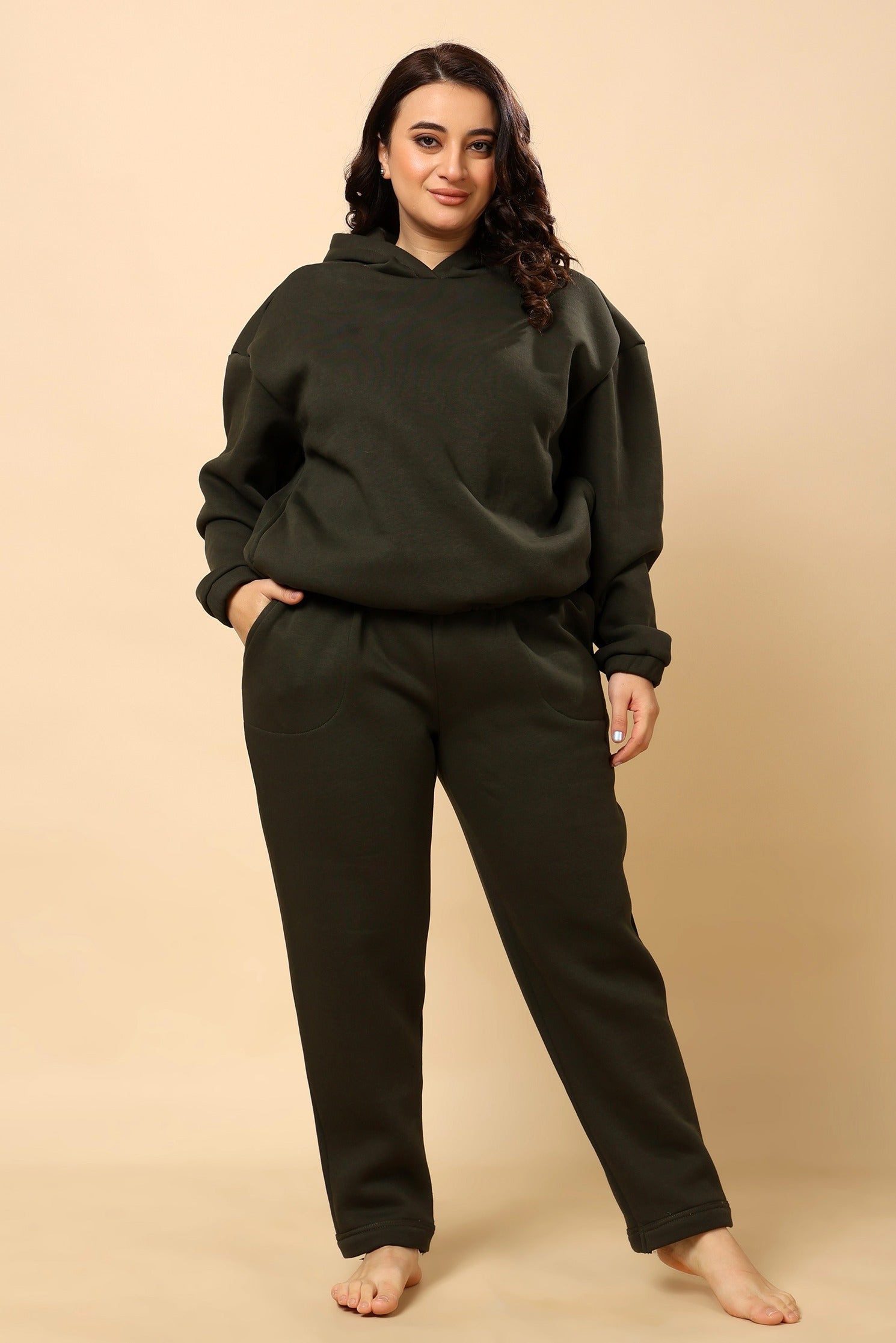 Solid Hoodie with Jogger Set- Dark Olive Green