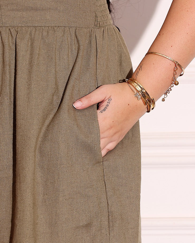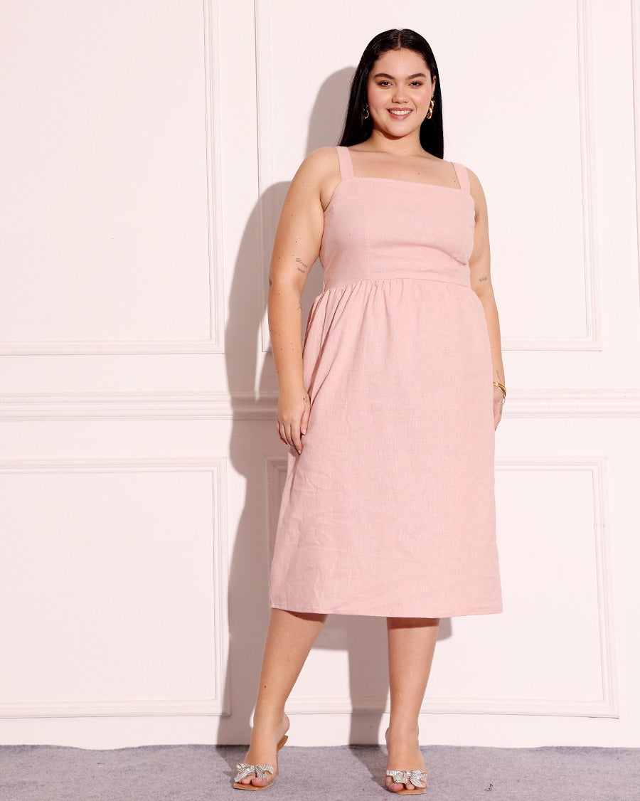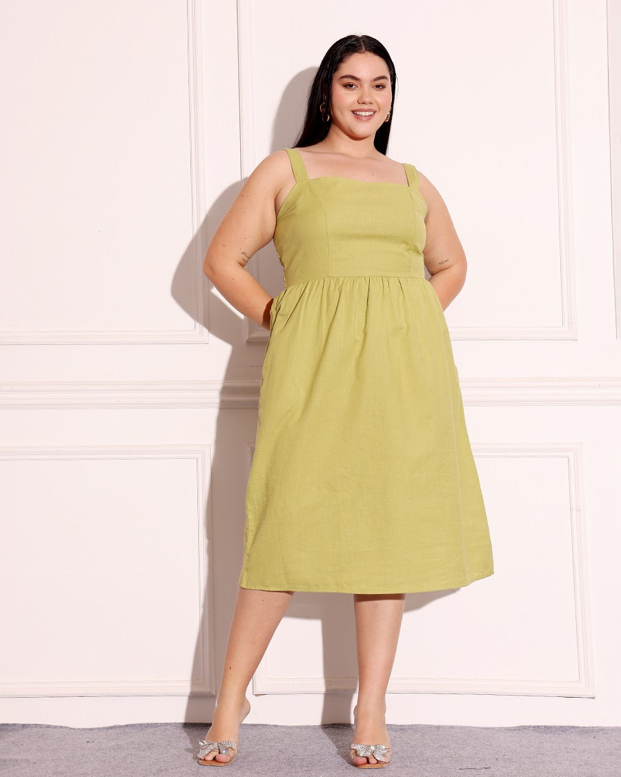 Elevate your casual style with this sleeveless A-line midi dress in soft linen. Featuring a chic square neck, it's perfect for beach days or relaxed outings.