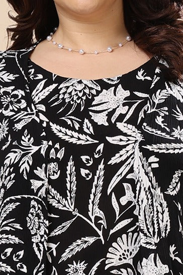 Embrace effortless style with our floral mini dress in soft viscose crepe. Featuring a loose kaftan shape and short balloon sleeves, it's perfect for casual outings.