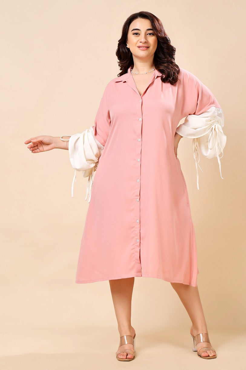 Elevate your style with this elegant A-line midi dress. Crafted from luxe poly crepe, it features long sleeves and a chic shirt collar, perfect for any party.