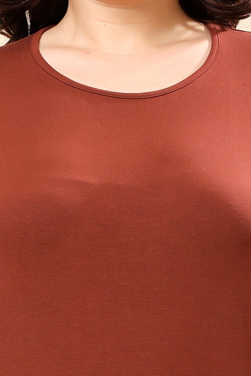 Brick Brown Solid Long T-shirt Dress