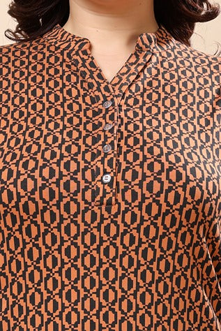 Elevate your comfort with our stylish Night Suit Set! Made from soft cotton lycra, featuring a chic Chinese collar and geometric print for a modern twist.