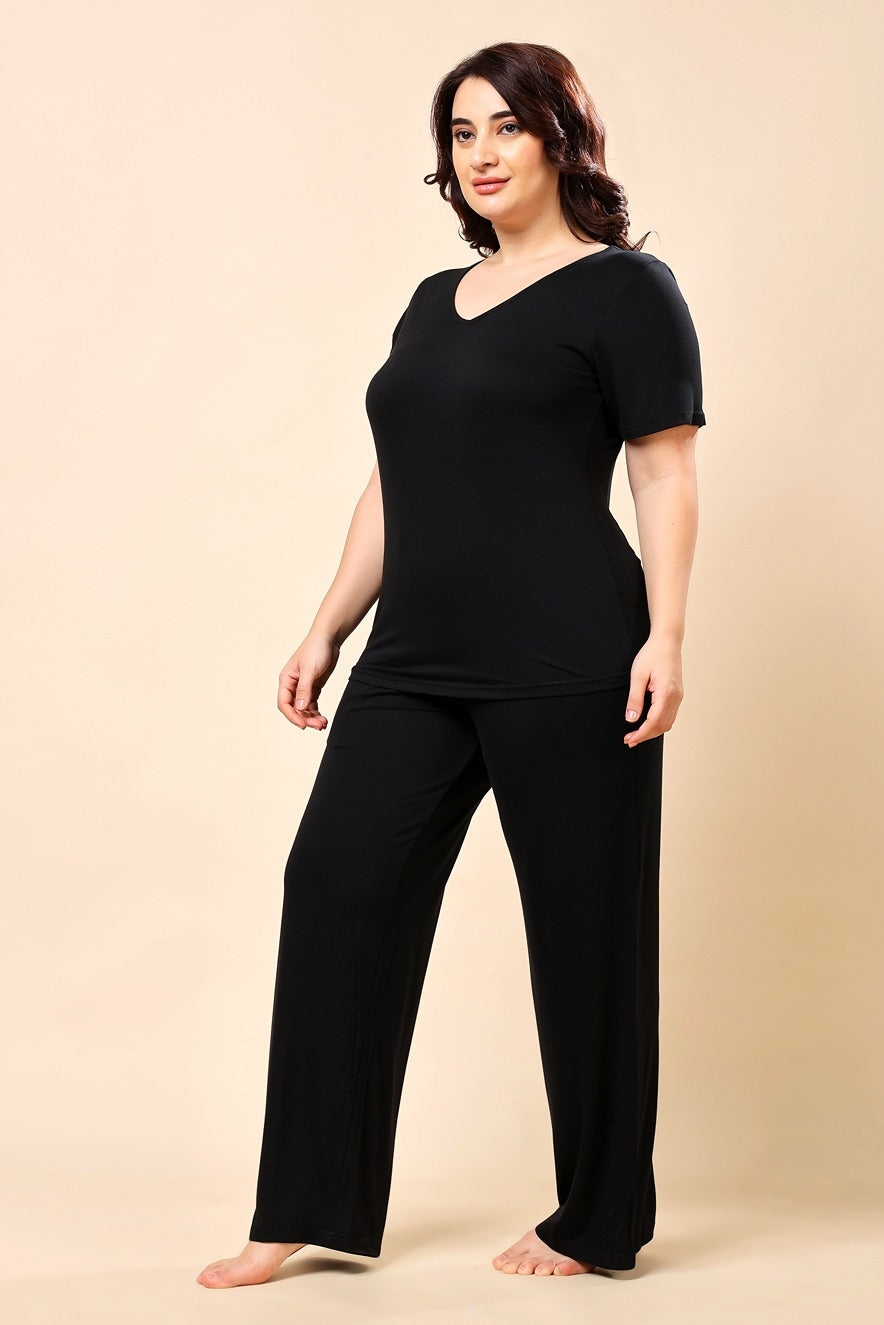 Solid Pyjama Night Suit Set - Black