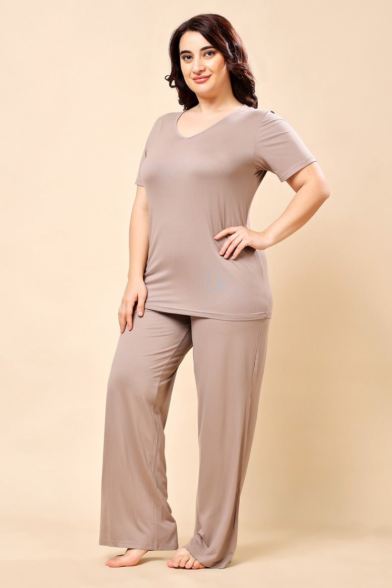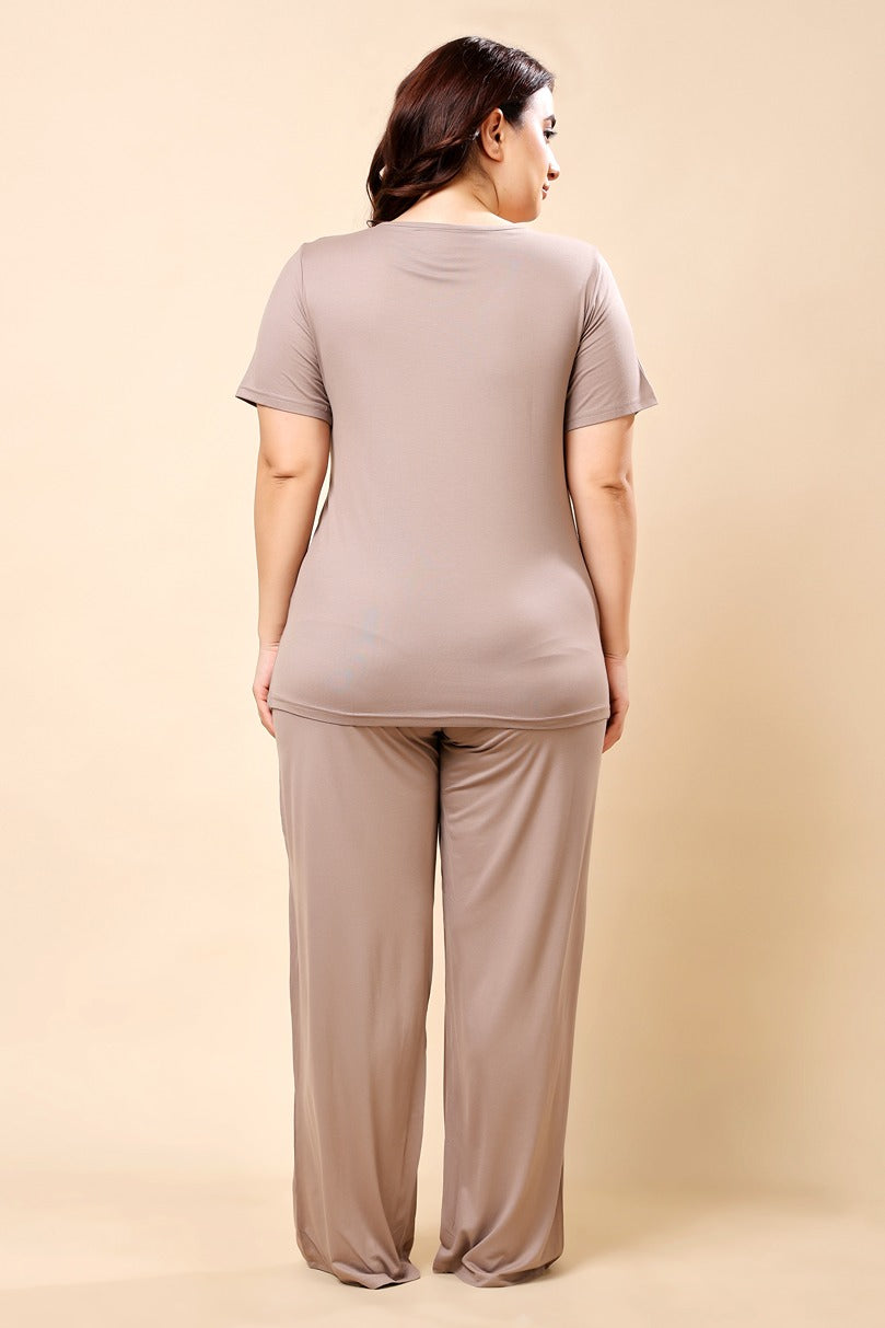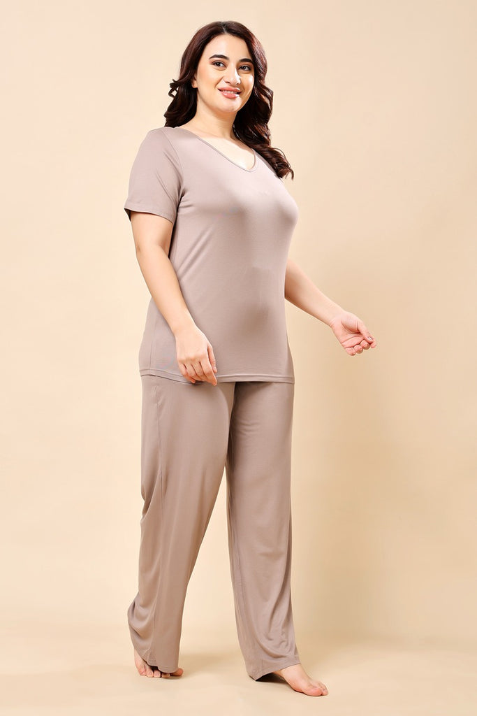 Solid Pyjama Night Suit Set - Taupe