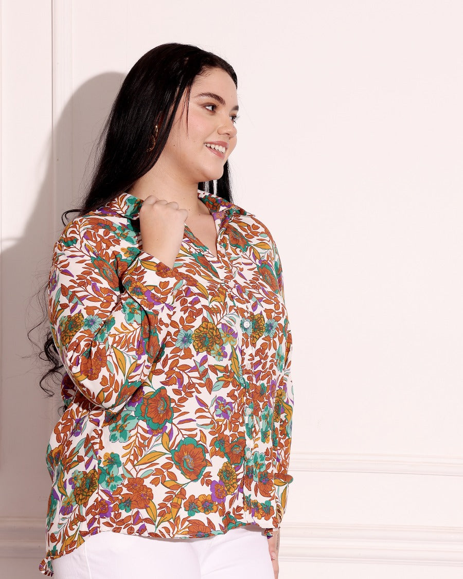 Off White Floral Printed Shirt