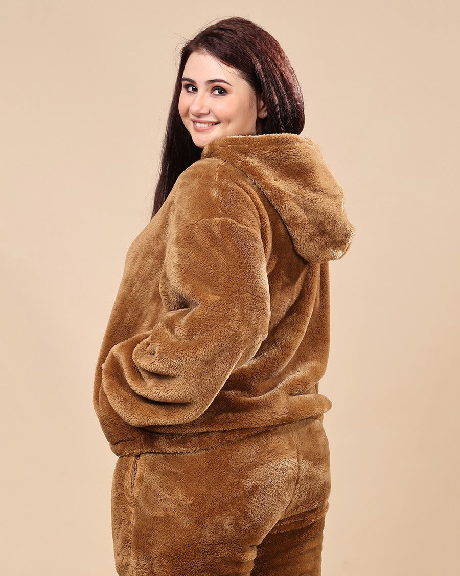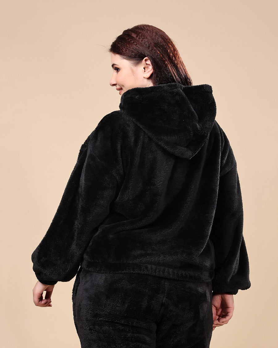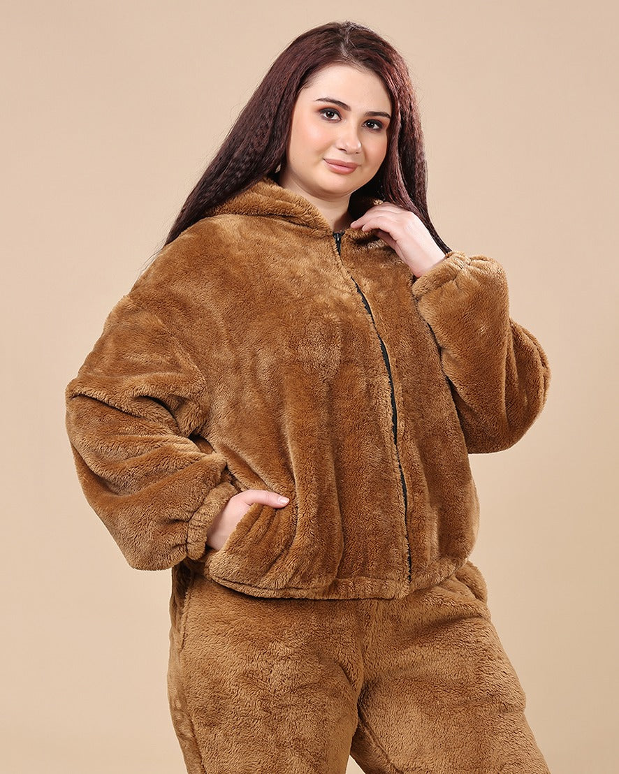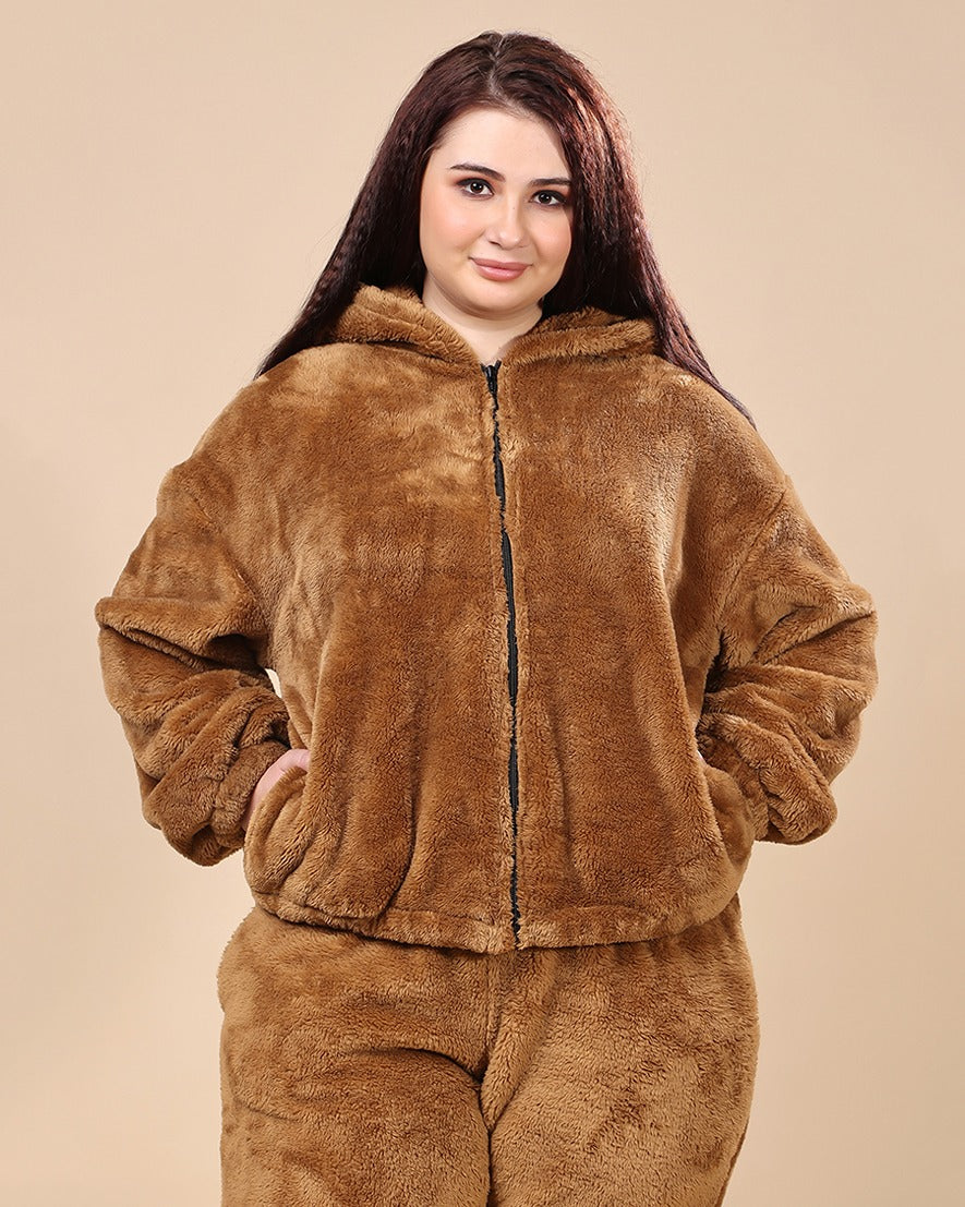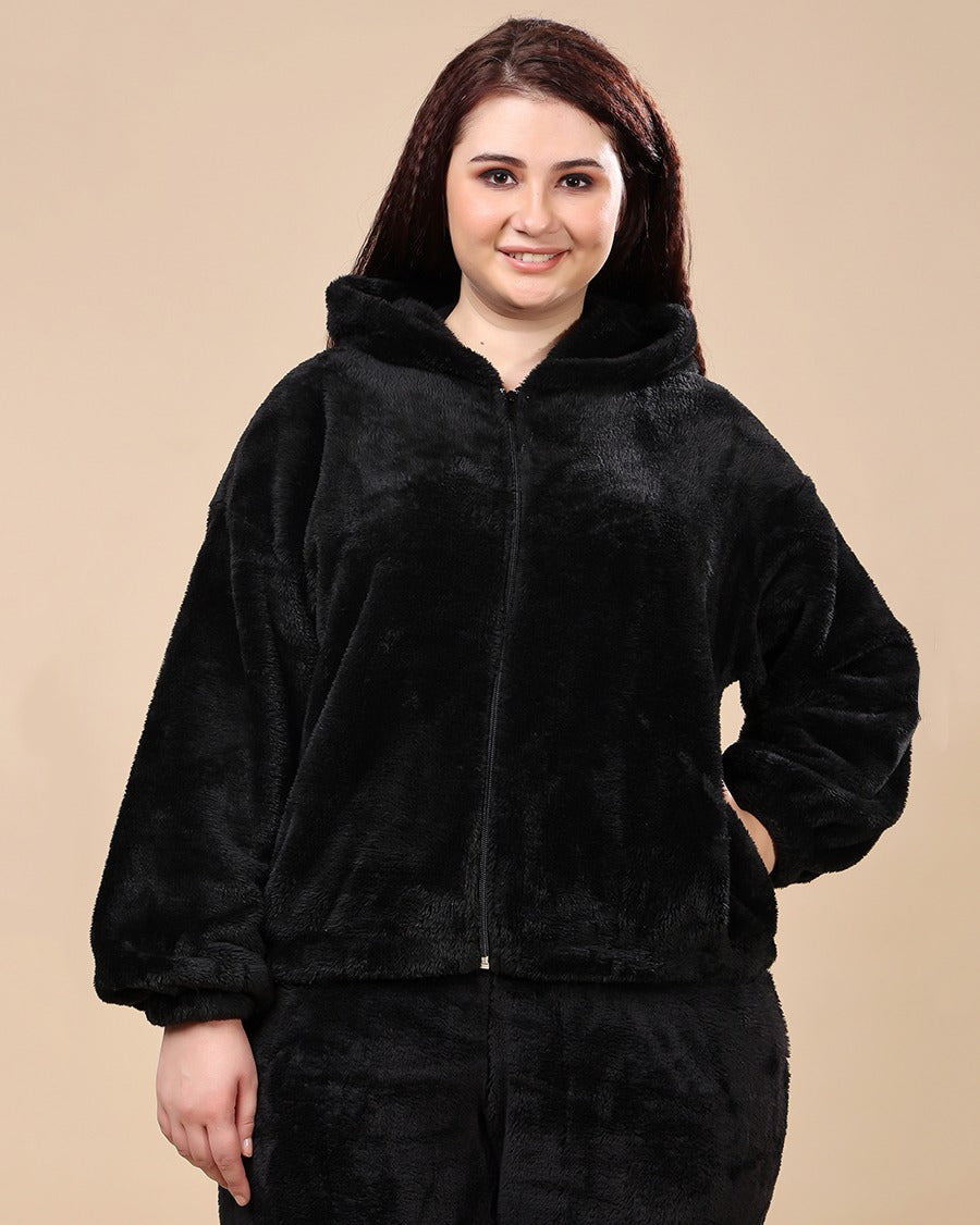 Solid Fur Hoodie Jacket