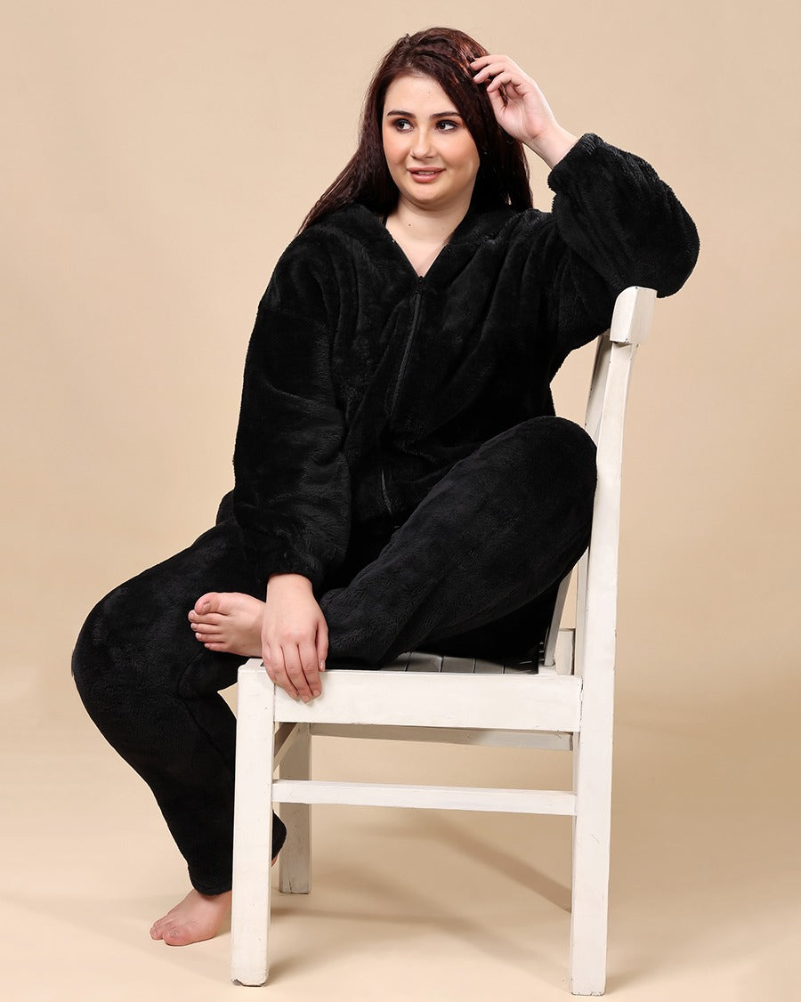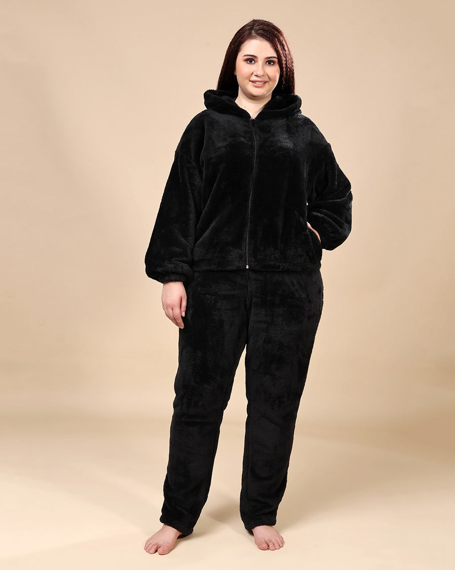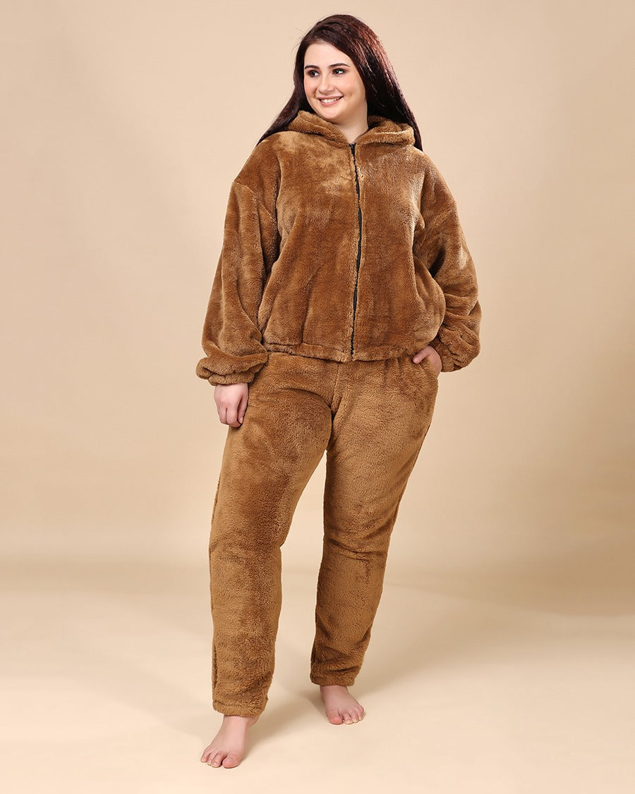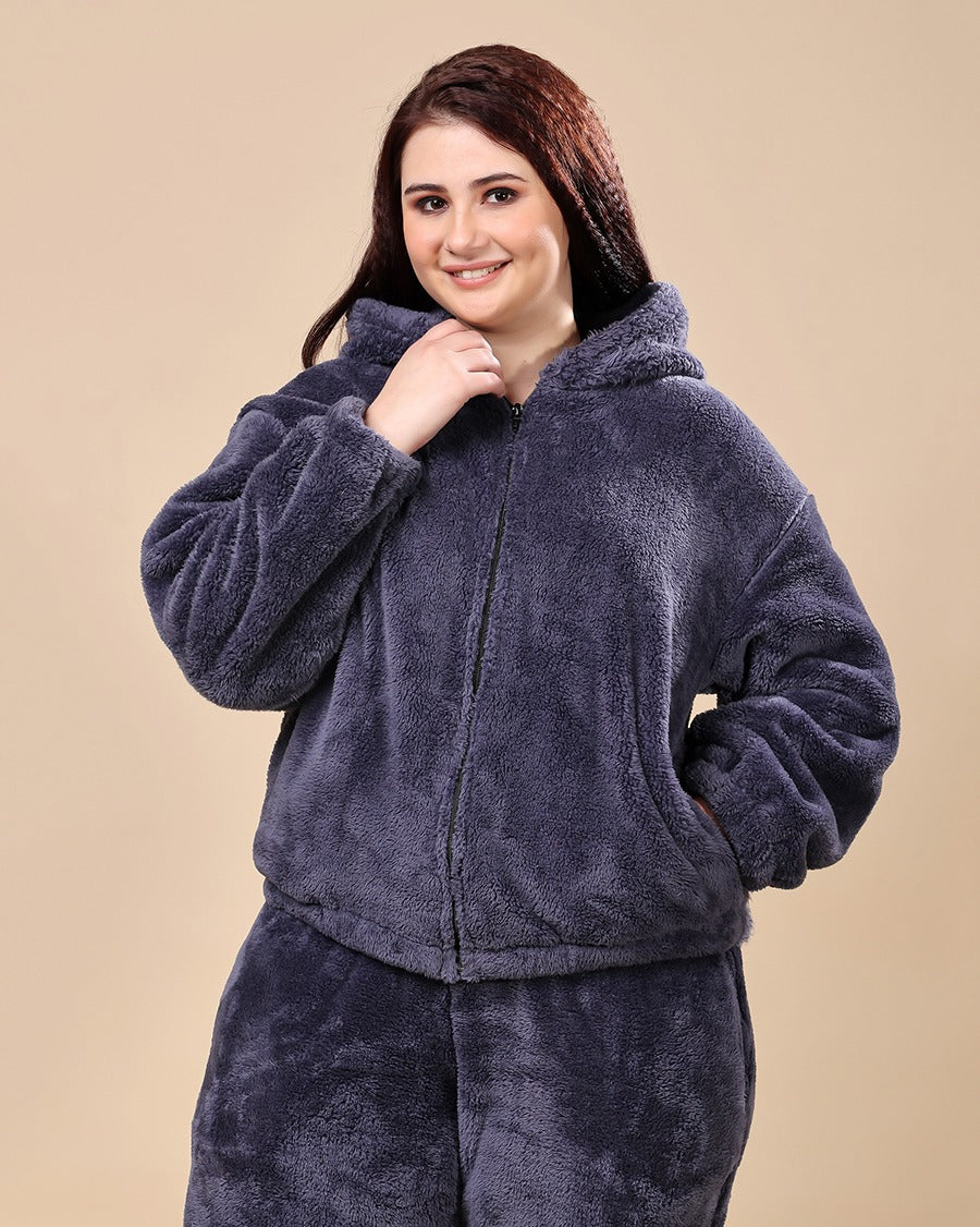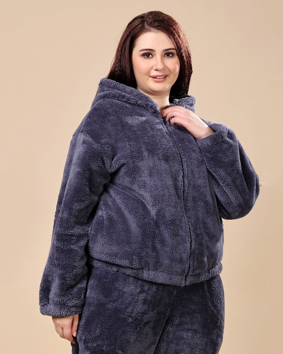 Solid Fur Hoodie Jacket