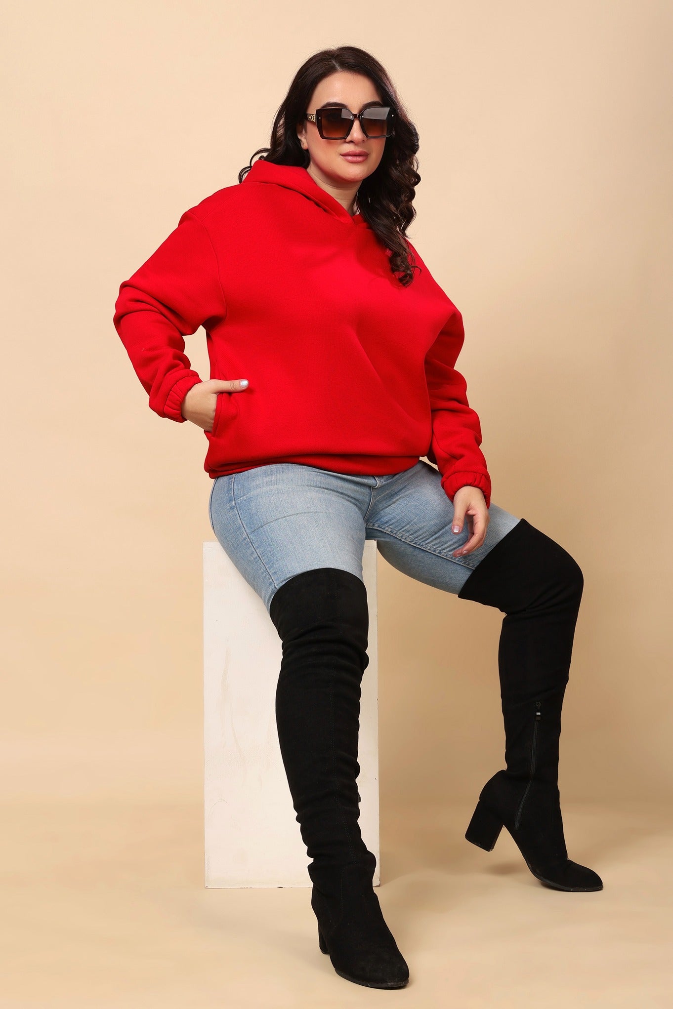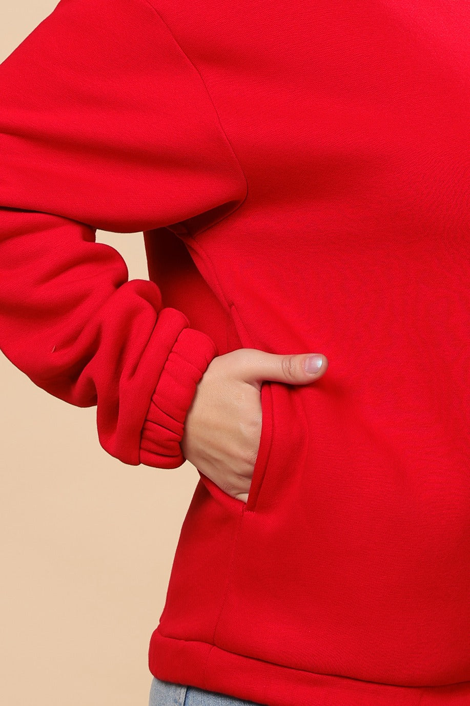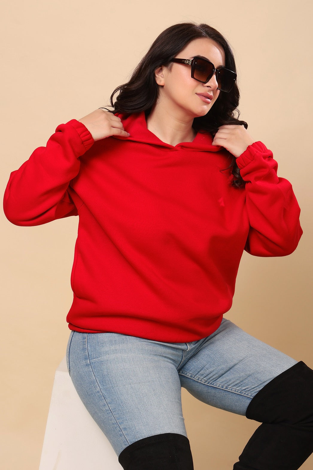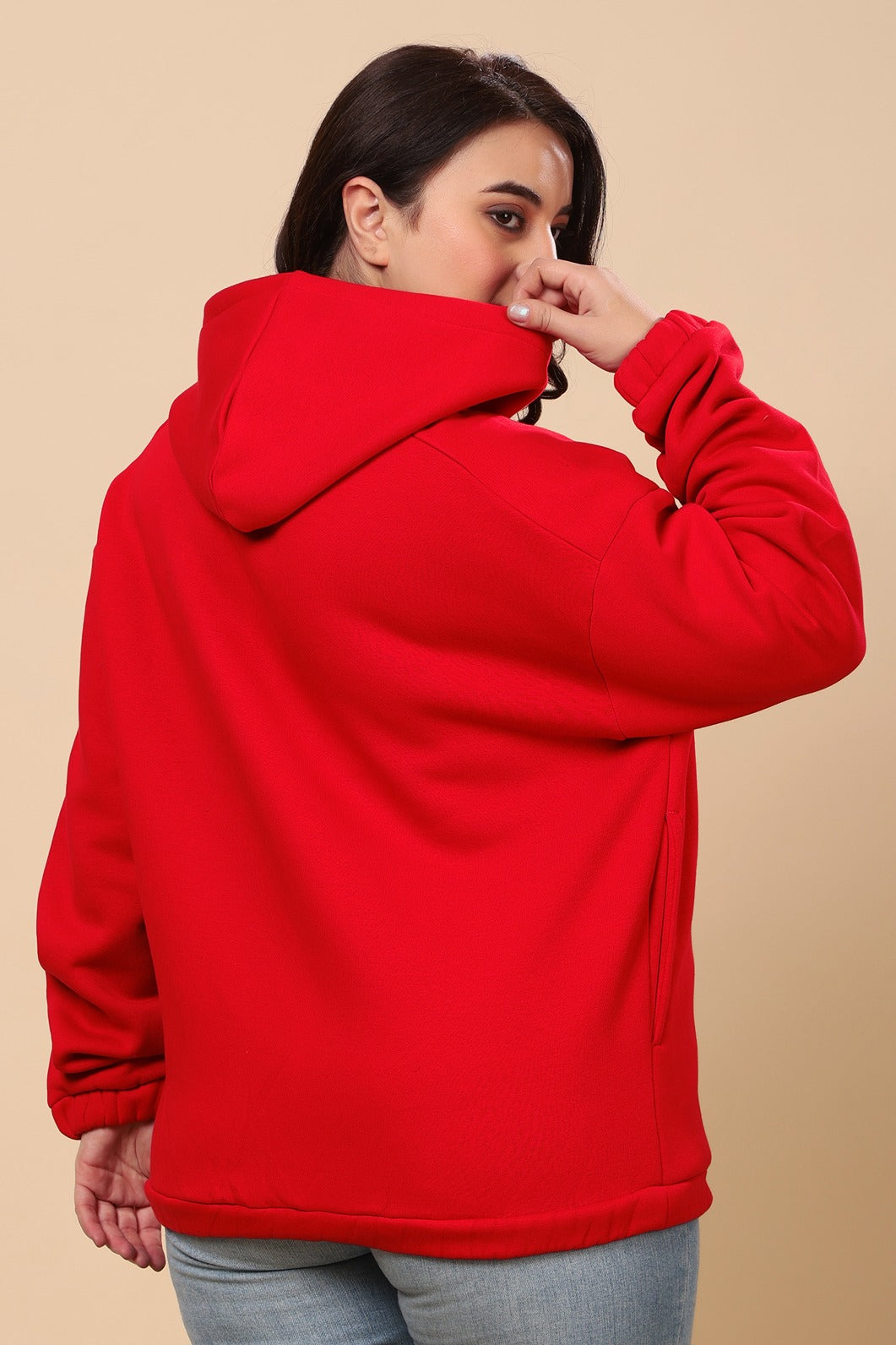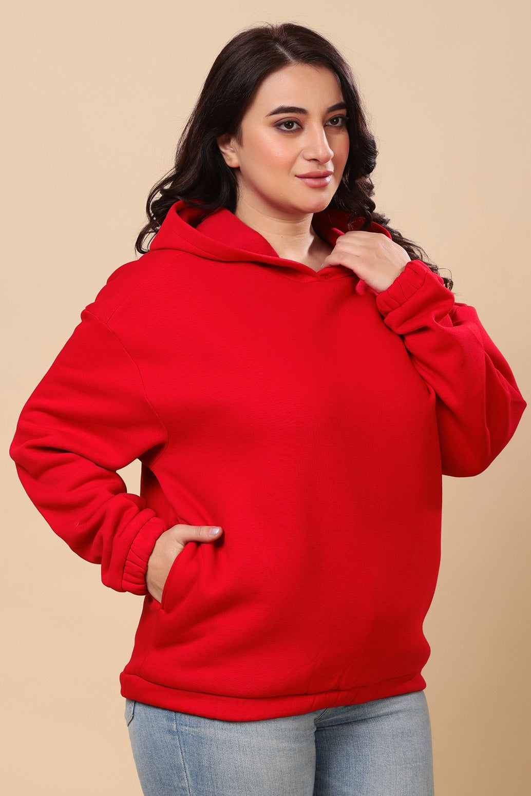 Solid Winter Hooded Sweatshirt- Red